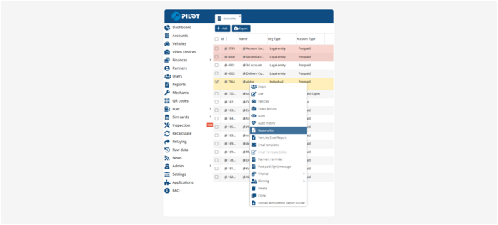 5. In the context menu, select Report list