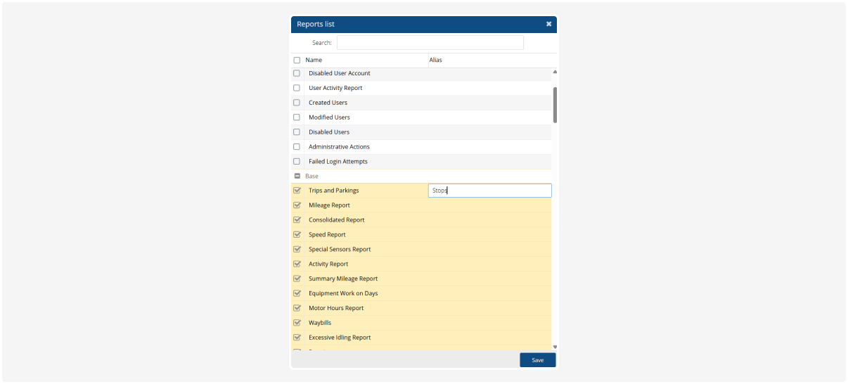If necessary, you can change a report name. To do this, click the field in the Alternative name column and enter a more user-friendly name.