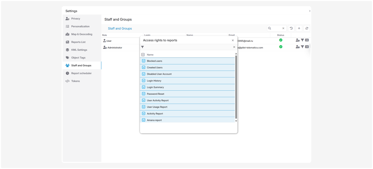 Next, you need to specify which reports will be available to specific users: