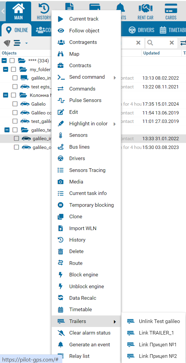 You can also bind and unbind trailers using the context menu of the object in the main tree.