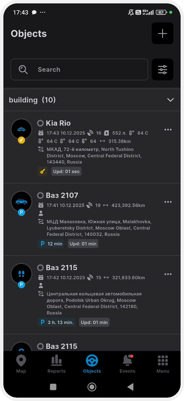Update interval for objects — set how often the app should update the location data for objects (e.g., every 20 seconds)
