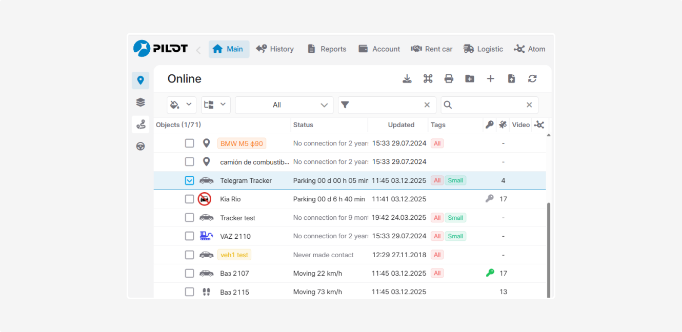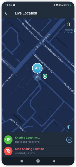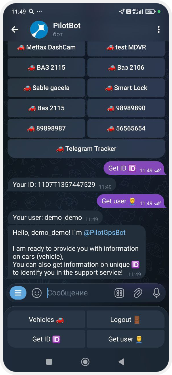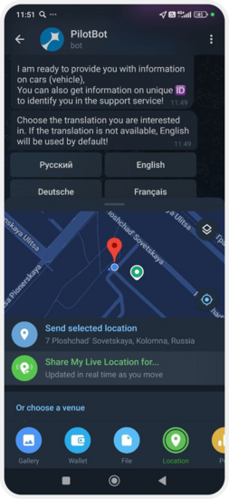 The Telegram bot can work as a virtual GPS tracker. The bot generates a special ID, which acts as a tracker number. When you enable location sharing in Telegram, the monitoring system receives your phone’s coordinates using this ID — just like from a regular GPS device.