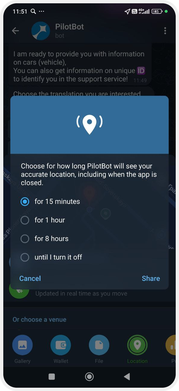 3. Enable location sharing in Telegram