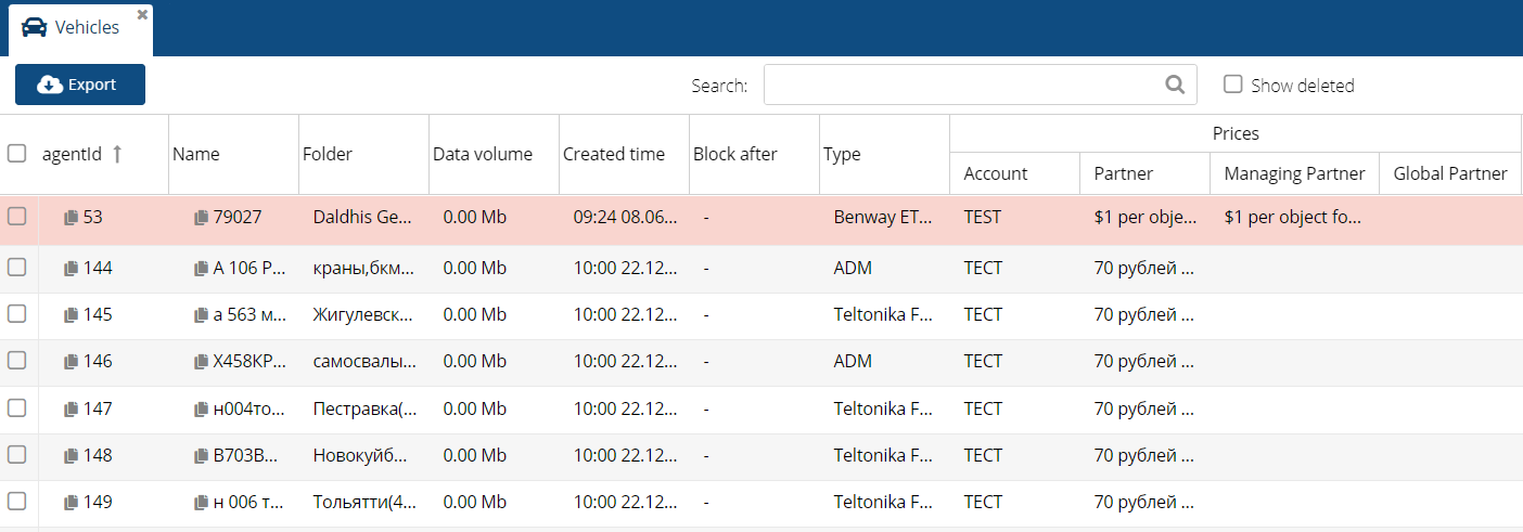 The tab is used to monitor existing vehicles.